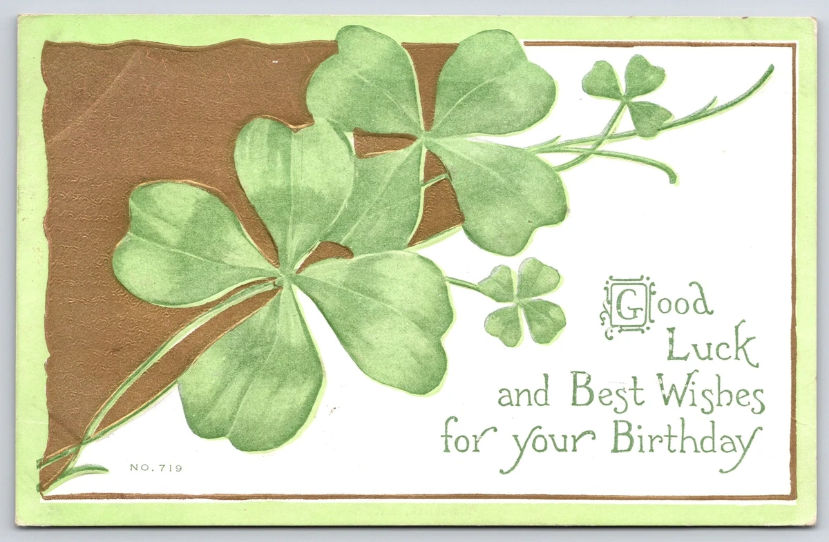 1915 Good Luck And Best Wishes For Your Birthday Lucky Four Leaf